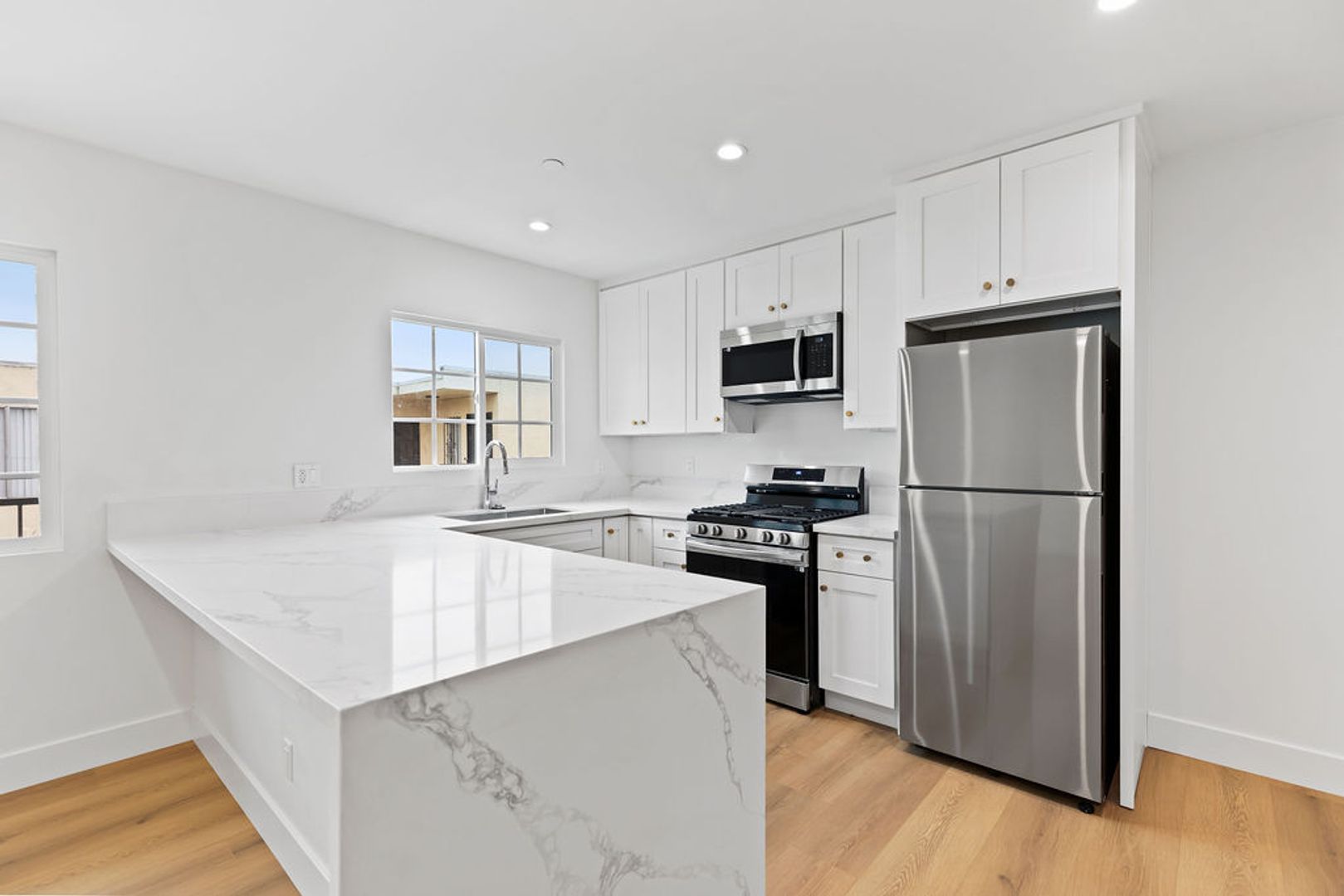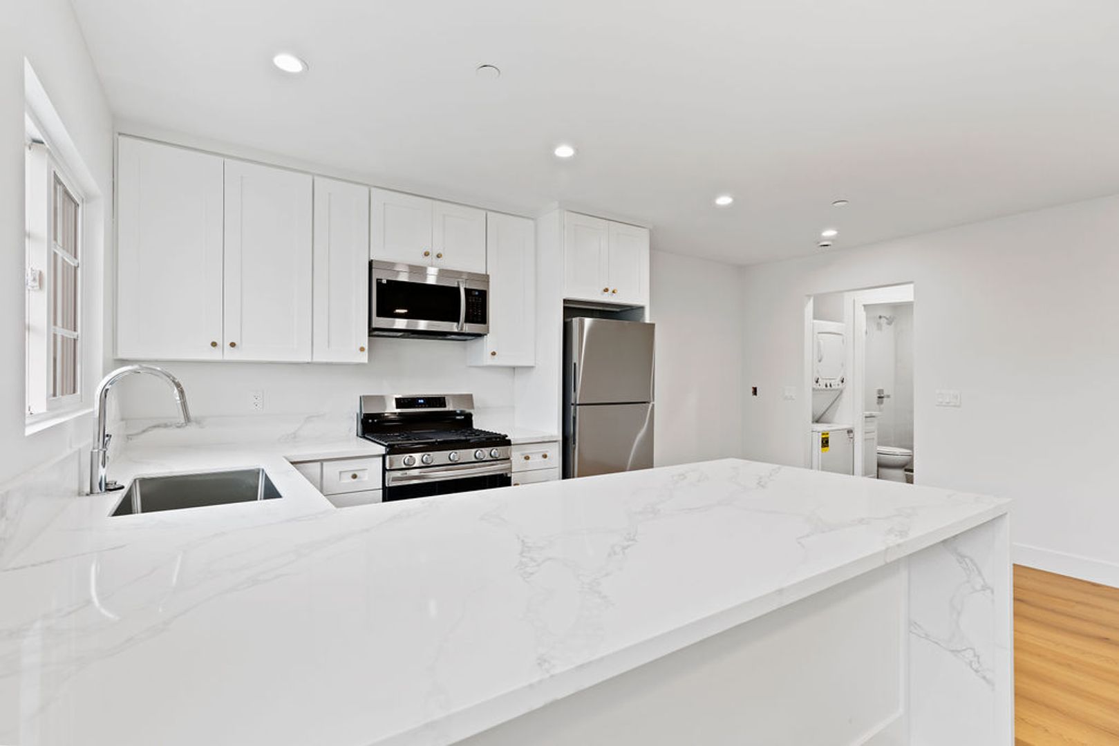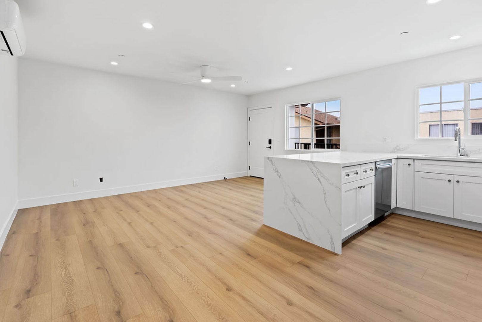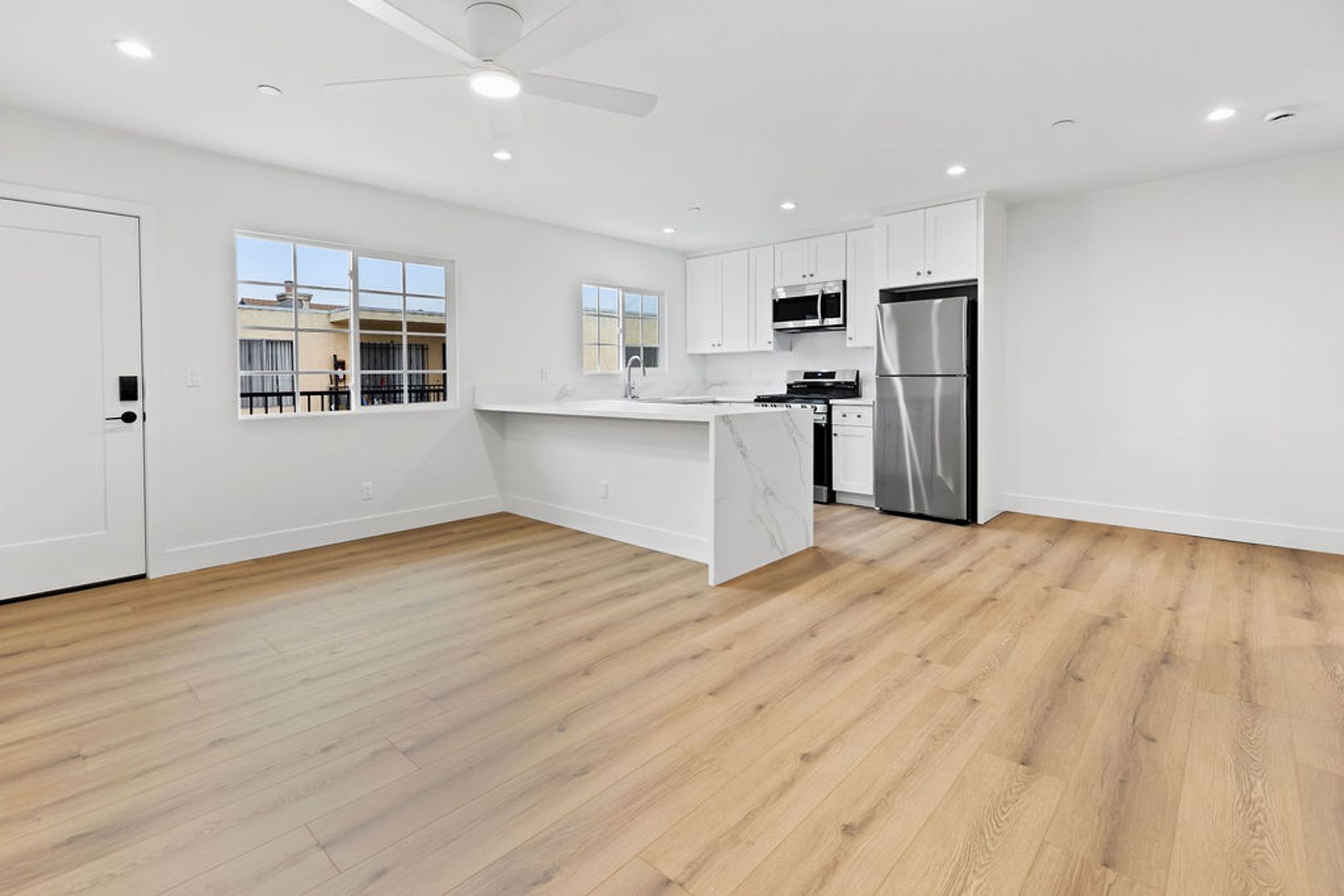 • Perfect Ambiance: Recessed lighting throughout the apartment creates a warm, inviting atmosphere, day or night.