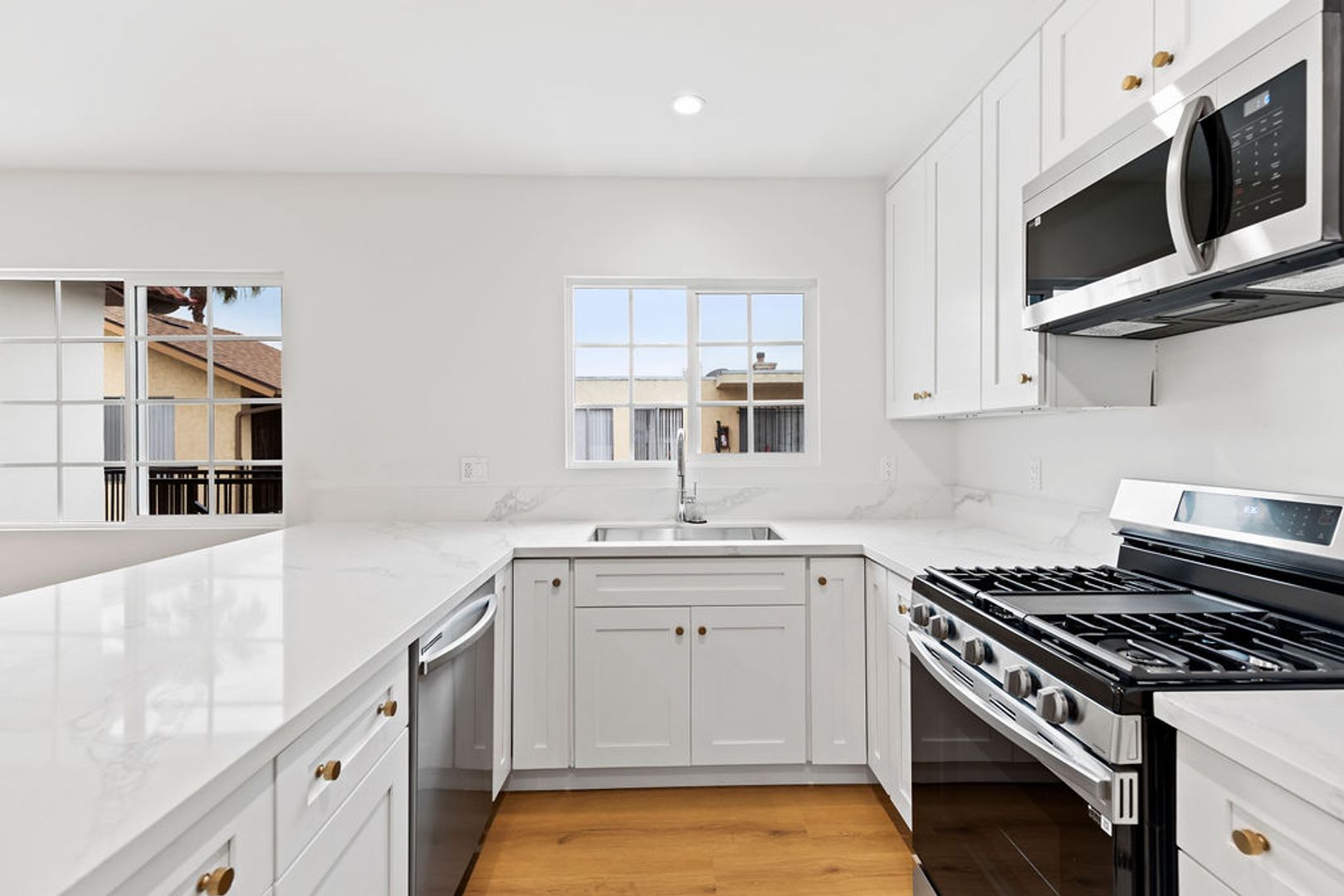 • Acabados de diseñador: Pisos tipo madera de lujo aptos para mascotas, gabinetes europeos de cierre suave, espectaculares salpicaderos de azulejo, y encimeras de cuarzo que se extienden elegantemente hasta el suelo.